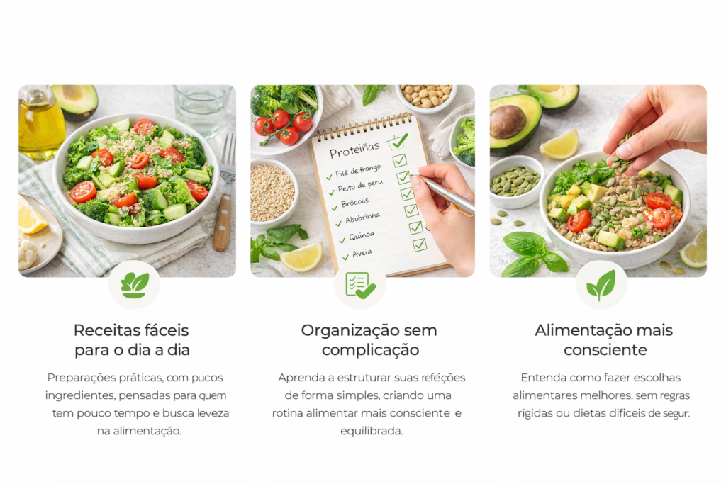 Nada de dietas complicadas ou regras difíceis. Aqui, o foco é simplicidade, consciência e rotina real.